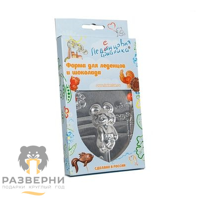 Магазин подарков Разверни предлагает разнообразные формочки для изготовления леденцов и шоколадок. В формы можно закладывать разные ингредиенты: марципан, мастику и прочие твердеющие кондитерские массы. Можно украсить полученные лакомства пищевыми блестками или добавками. Используйте: сахар, воду (или сок) или шоколад, в таком необычном подарке можно изготовить вкусный леденец на палочке или шоколадку. В набор входит 1 форма, 10 палочек и инструкция. Преимущества наших форм: