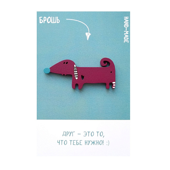 Удивительно яркий и интересный подарок ручной работы из Санкт-Петербурга доставит радость любому школьнику и офисному работнику. Пусть сегодня день не задался, посмотрите в зеркало и вспомните самого милого друга. Сегодня он бордовый и немного продолговатый, но очень забавный, а главное, уже ваш. Сторожит ваш гардероб и виляет хвостом. Дарите забавные броши всем близким.