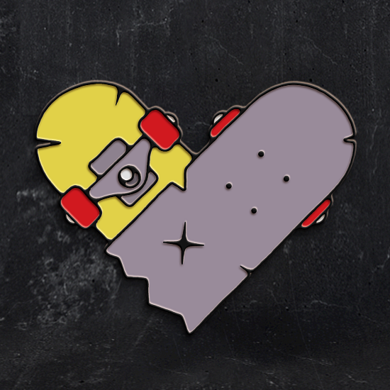 Металлический значок-пин в виде желто-коричневого сердца из скрещенных скейтбордов. Его особенность – авторский дизайн и качественное исполнение. Крепится на одежду или рюкзак с помощью цанги-бабочки. Не большого, но и не маленького размера, тонкий, легкий. Дополните свой стиль или подарите тем, кто тоже обожает кататься на скейте.