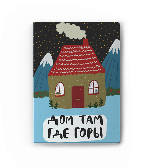 Рисунок на обложке приглянется тем, для кого горы роднее всего. На нем изображен маленький дом в горах. Внутри уютно и тепло, кадки с растениями, серый кот на подоконнике. Вокруг горы, поле и небо со звездами. Горы всегда с вами: в сердце и на обложке для паспорта.