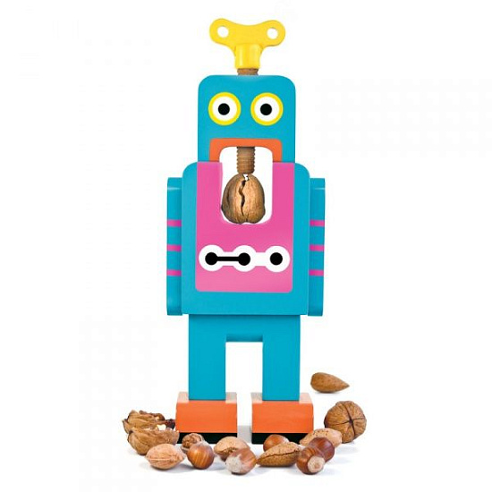 Для того чтобы опробовать его в действии достаточно всего лишь положить в специальную емкость для колки любой вид ореха и легонько повернуть ключик. Благодаря стильному и красочному дизайну, а также конструктивному исполнению расколоть орех с помощью робота сможет даже ребенок.