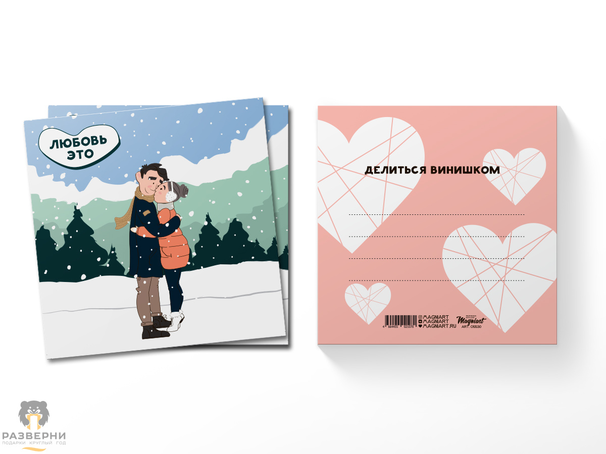 Открытка Magniart Любовь - это греть зимой друг друга, 13 х 13 см
