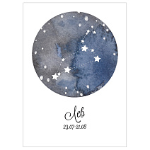 Открытка украшена акварельным рисунком созвездия Девы, а точнее его наиболее ярких звёзд. На оборотной стороне даётся краткое описание этого зодиакального знака.