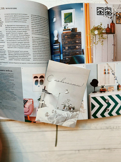 Почтовая открытка в неярких светло-серых тонах. На ней изображены уютные домашние вещи: кровать с теплым одеялом, растения в горшках, лампа – и надпись «С новосельем!» Поздравьте друзей или родных с переездом в новую квартиру. Подпишите и отправьте открытку по почте, курьером или передайте лично в руки. Изготовлена из картона плотностью 300 г/м, размером чуть меньше стандартного (135 х 90 мм). Односторонняя, с обратной стороны без рисунка. В комплекте конверт из крафт-бумаги.