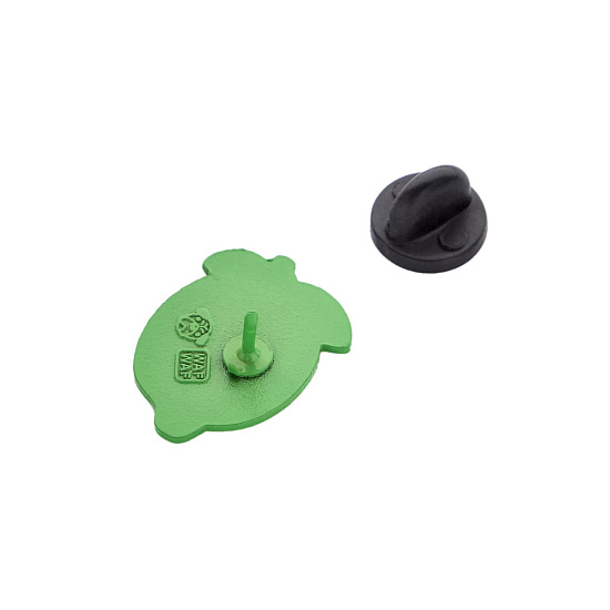 Аккуратный небольшой значок из металла. Окрашен эмалью. Крепление цанга-бабочка прочно удерживает значок на ткани. Застежка пластиковая.