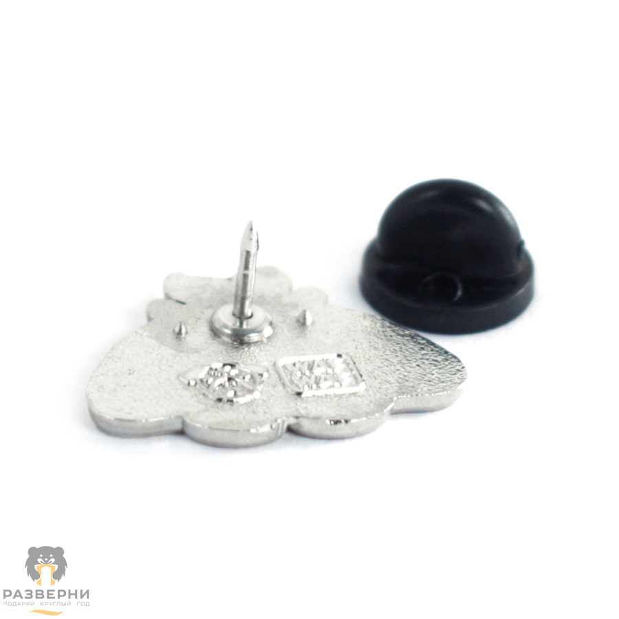 Значок крепится цангой-бабочкой: иглой сзади пина прокалываете ткань, на острый конец надеваете пластиковую шляпку. Значок зафиксирован с двух сторон и прочно держится. Мы не рекомендуем крепить к тонкой ткани, так как на ней может остаться дырочка от иглы. С плотными тканями всё будет в порядке.